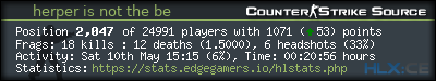 | Rank | Name | Time | Last Use | Kills | Deaths | K:D | Headshots | HS:K | Suicides | Accuracy |