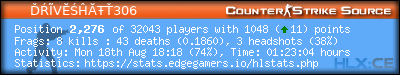 Rank | Map | Kills | % | Ratio | Deaths | % | Ratio | K:D | Headshots | % | Ratio | HS:K |