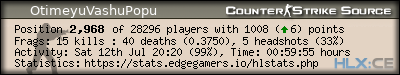 Rank | Name | Time | Last Use | Kills | Deaths | K:D | Headshots | HS:K | Suicides | Accuracy |