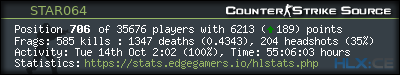 Headshots per Kill: | 0.3487 (0.4211*) | |