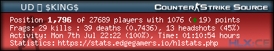 Rank | Server | Kills | % | Ratio | Deaths | K:D | Headshots | Percentage of Headshots | % | HS:K |