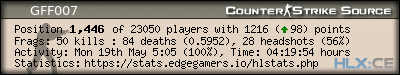 Rank | Map | Kills | % | Ratio | Deaths | % | Ratio | K:D | Headshots | % | Ratio | HS:K |