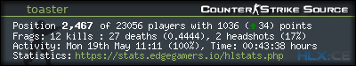 | Headshots per Kill: | 0.3448 (-*) | |