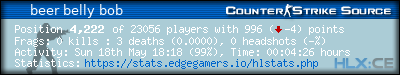 | Rank | Name | Time | Last Use | Kills | Deaths | K:D | Headshots | HS:K | Suicides | Accuracy |