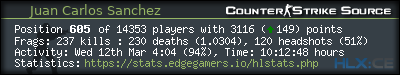 | Rank | Server | Kills | % | Ratio | Deaths | K:D | Headshots | Percentage of Headshots | % | HS:K |