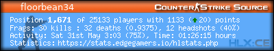 | Rank | Name | Time | Last Use | Kills | Deaths | K:D | Headshots | HS:K | Suicides | Accuracy |
