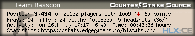 Rank | Server | Kills | % | Ratio | Deaths | K:D | Headshots | Percentage of Headshots | % | HS:K |