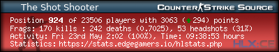 Rank | Server | Kills | % | Ratio | Deaths | K:D | Headshots | Percentage of Headshots | % | HS:K |
