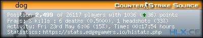 Rank | Map | Kills | % | Ratio | Deaths | % | Ratio | K:D | Headshots | % | Ratio | HS:K |