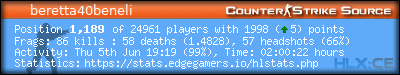 Rank | Map | Kills | % | Ratio | Deaths | % | Ratio | K:D | Headshots | % | Ratio | HS:K |