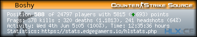 Rank | Server | Kills | % | Ratio | Deaths | K:D | Headshots | Percentage of Headshots | % | HS:K |