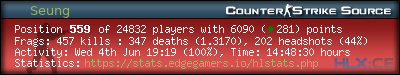 | Rank | Name | Time | Last Use | Kills | Deaths | K:D | Headshots | HS:K | Suicides | Accuracy |