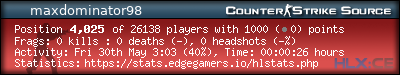 Rank | Map | Kills | % | Ratio | Deaths | % | Ratio | K:D | Headshots | % | Ratio | HS:K |