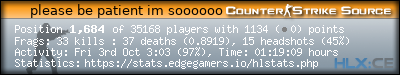 1 | =(eGO)= | DUST2 | NO AWPS/AUTOS | EdgeGamers.com | 33 | 100.00% | 37 | 0.8919 | 15 | 100.00% | 0.4545 |