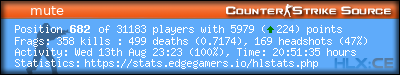 Rank | Server | Kills | % | Ratio | Deaths | K:D | Headshots | Percentage of Headshots | % | HS:K |