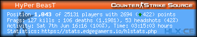 | 8 | HyPer BeasT | 0d 05:10:32h | 2025-06-14 20:16:28 | 190 | 168 | 1.13 | 86 | 0.45 | 0 | 0.0% |