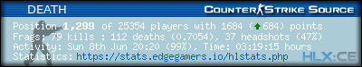 | Rank | Name | Time | Last Use | Kills | Deaths | K:D | Headshots | HS:K | Suicides | Accuracy |