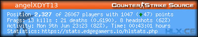 Rank | Map | Kills | % | Ratio | Deaths | % | Ratio | K:D | Headshots | % | Ratio | HS:K |