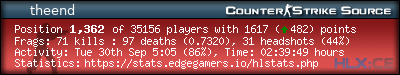 1 | =(eGO)= | DUST2 | NO AWPS/AUTOS | EdgeGamers.com | 70 | 100.00% | 95 | 0.7368 | 30 | 100.00% | 0.4286 |