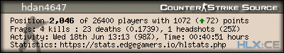 | Rank | Server | Kills | % | Ratio | Deaths | K:D | Headshots | Percentage of Headshots | % | HS:K |