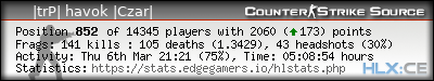 Headshots per Kill: | 0.3560 (0.3333*) | |