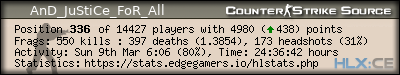 Rank | Map | Kills | % | Ratio | Deaths | % | Ratio | K:D | Headshots | % | Ratio | HS:K |