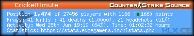 Headshots per Kill: | 0.5238 (-*) | |