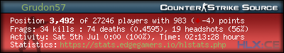 Rank | Map | Kills | % | Ratio | Deaths | % | Ratio | K:D | Headshots | % | Ratio | HS:K |