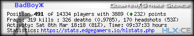 Headshots: | 323 (23*) | |
