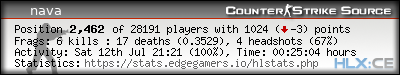 Rank | Map | Kills | % | Ratio | Deaths | % | Ratio | K:D | Headshots | % | Ratio | HS:K |