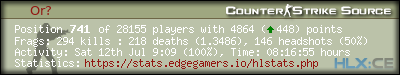 Rank | Server | Kills | % | Ratio | Deaths | K:D | Headshots | Percentage of Headshots | % | HS:K |