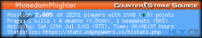 Rank | Map | Kills | % | Ratio | Deaths | % | Ratio | K:D | Headshots | % | Ratio | HS:K |