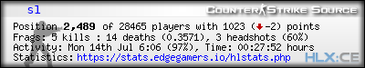 | Rank | Name | Time | Last Use | Kills | Deaths | K:D | Headshots | HS:K | Suicides | Accuracy |