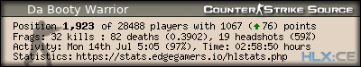 Rank | Map | Kills | % | Ratio | Deaths | % | Ratio | K:D | Headshots | % | Ratio | HS:K |