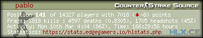 | 1 | =(eGO)= | DUST2 | NO AWPS/AUTOS | EdgeGamers.com | 834 | 100.00% | 615 | 1.3561 | 441 | 100.00% | 0.5288 |