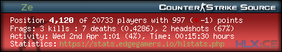 Rank | Map | Kills | % | Ratio | Deaths | % | Ratio | K:D | Headshots | % | Ratio | HS:K |