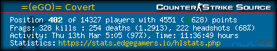 | 1 | =(eGO)= Covert | 3d 04:53:46h | 2025-08-24 02:51:38 | 2,287 | 1,773 | 1.29 | 1,463 | 0.64 | 0 | 27.5% |