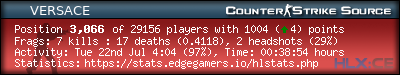 Rank | Map | Kills | % | Ratio | Deaths | % | Ratio | K:D | Headshots | % | Ratio | HS:K |