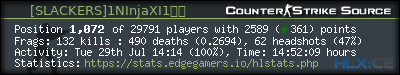| 15 | [SLACKERS]1NInjaXI1﴿﴾ | 0d 08:16:58h | 2025-08-02 21:35:04 | 64 | 266 | 0.24 | 30 | 0.47 | 0 | 0.0% |
