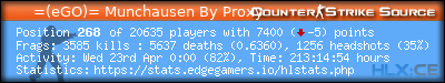| 1 | =(eGO)= | DUST2 | NO AWPS/AUTOS | EdgeGamers.com | 453 | 100.00% | 680 | 0.6662 | 154 | 100.00% | 0.3400 |