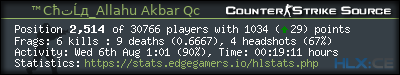 Rank | Map | Kills | % | Ratio | Deaths | % | Ratio | K:D | Headshots | % | Ratio | HS:K |