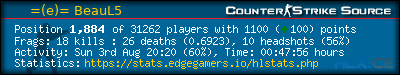 1 | =(eGO)= | DUST2 | NO AWPS/AUTOS | EdgeGamers.com | 104 | 100.00% | 106 | 0.9811 | 58 | 100.00% | 0.5577 |