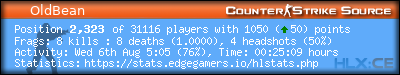 Rank | Map | Kills | % | Ratio | Deaths | % | Ratio | K:D | Headshots | % | Ratio | HS:K |