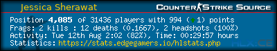 Rank | Map | Kills | % | Ratio | Deaths | % | Ratio | K:D | Headshots | % | Ratio | HS:K |