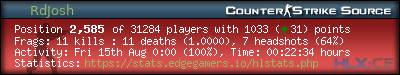 Rank | Map | Kills | % | Ratio | Deaths | % | Ratio | K:D | Headshots | % | Ratio | HS:K |