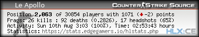 Rank | Map | Kills | % | Ratio | Deaths | % | Ratio | K:D | Headshots | % | Ratio | HS:K |