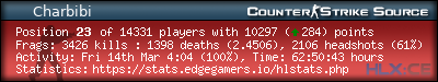 | Rank | Server | Kills | % | Ratio | Deaths | K:D | Headshots | Percentage of Headshots | % | HS:K |
