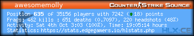 1 | =(eGO)= | DUST2 | NO AWPS/AUTOS | EdgeGamers.com | 334 | 100.00% | 477 | 0.7002 | 150 | 100.00% | 0.4491 |