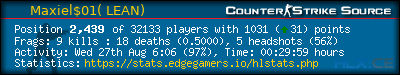 Rank | Map | Kills | % | Ratio | Deaths | % | Ratio | K:D | Headshots | % | Ratio | HS:K |