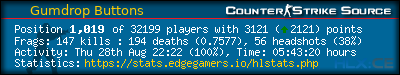 Rank | Server | Kills | % | Ratio | Deaths | K:D | Headshots | Percentage of Headshots | % | HS:K |